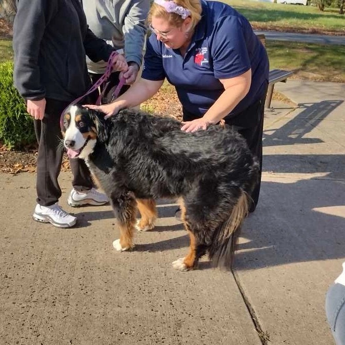In 2024, Tex was brought by a local shelter to receive his blessing. When he approached Miss Melissa, our Youth and Family Ministries Director, he practically climbed into her lap. He has been living his best life in Melissa and Mike's home ever since.